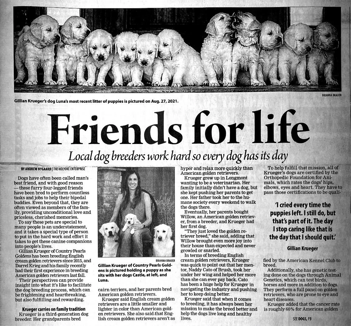 APET (Avidog Pet Evaluation Test) done on every puppy. This is how we place puppies with families and pick our therapy puppies. This will help you when training your puppy as we are able to identify weaknesses and strengths in each individual puppy.